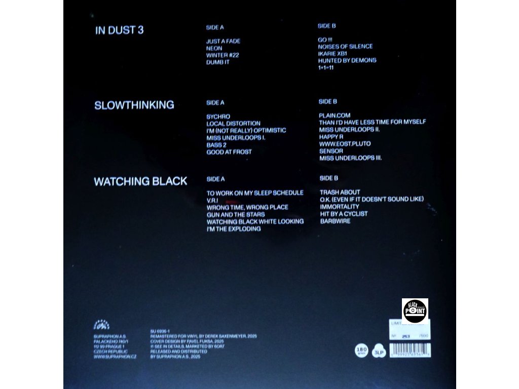 LP2: Slowthinking | Sychro / Local Distortion / I'm (Not Really) Optimistic / Miss Underloops I. / Bass 2 / Good At Frost / Plain.com / Than I'd Have Less Time For Myself / Miss Underloops II. / Happy R / www.EOST.pluto / Sensor / Miss Underloops III.