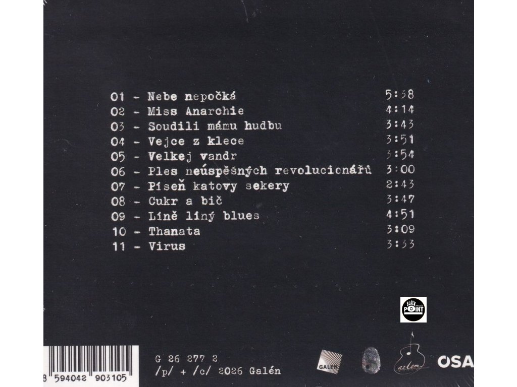 Nebe nepočká * Miss Anarchie * Soudili mámu hudbu * Vejce z klece * Velkej vandr * Ples neúspěšných revolucionářů * Píseň katovy sekery * Cukr a bič * Líně líný blues * Thanata * Virus