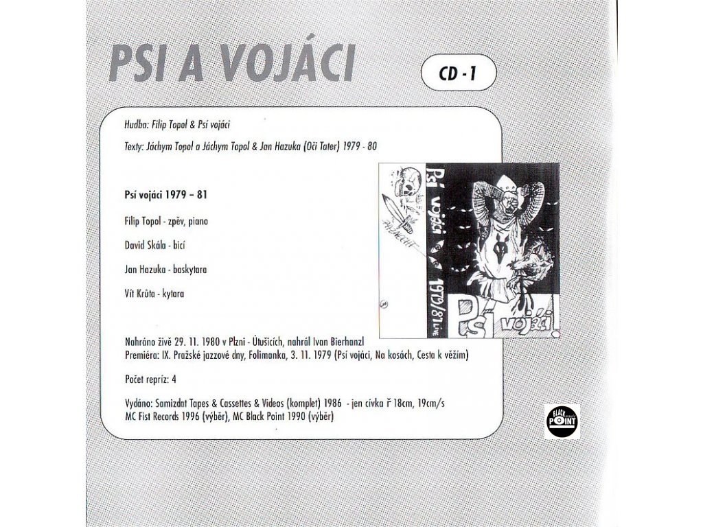 Prague band, founded towards the end of the 70‘s. Since the very beginning the band have been dominated by the composer, pianist and singer Filip Topol, accompanied by David Skála (ds) and Jan Hazuka (bgt).From time to time they use various instrumentalists as guests. The band grew up in the musical underground, their music is uncombed, wild, unbridled. At the beginning the lyrics were written by Filip‘s elder brother Jáchym. When he later started to use his lyrics in Národní třída, Psí vojáci set Red-Indian poetry to music, poems of Sylvia Plath and lyrics of Filip himself at last.