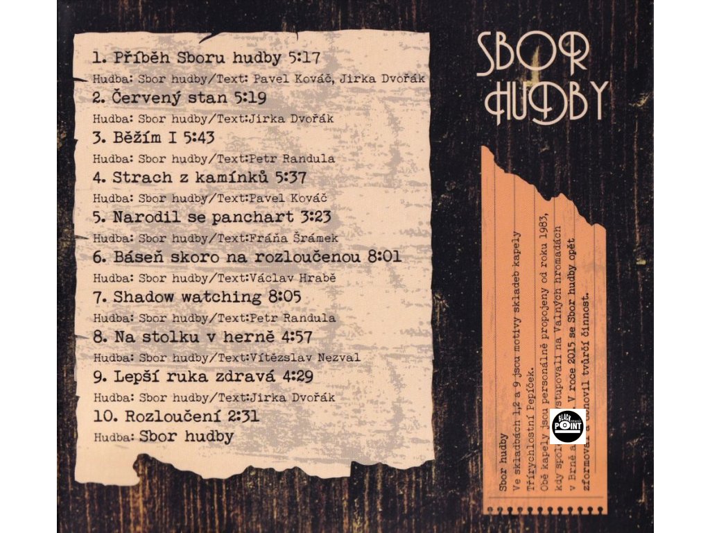 Skupina SBOR HUDBY existuje s přestávkami od roku 1983. Tehdy zahrála na Valné hromadě, což byly moravské, víceméně neoficiální, přehlídky "neobvyklých" kapel. Kromě Sboru hudby bylo tehdy možné vidět a slyšet např. skupiny Slepé střevo, Nucleus, Třírychlostní Pepíček, IQ 60 nebo Odvážní bobříci. Aktuální sestava čítá základnu stálých muzikantů a hostující profesory. Všichni se také podíleli na stávajícícm CD. Základnu tvoří Petr "Karkul" Randula: klávesové nástroje, bass syntetizér, bicí, cello sample, zpěv, Václav "Váša" Košťál: housle, zpěv, Jiří "Bobeš" Prokš: baskytara, akustická kytara, zpěv, Luboš Malinovský: programování bicích. Hosté: Mikoláš Chadima: saxofon (1,9), Petr Fiala: kytary (8,9), Josef Ostřanský: kytara (7), Josef Klíč: violoncello (9), Milan Vašíček: kytara (6), Zuzana Randulová: zpěv (2,3).